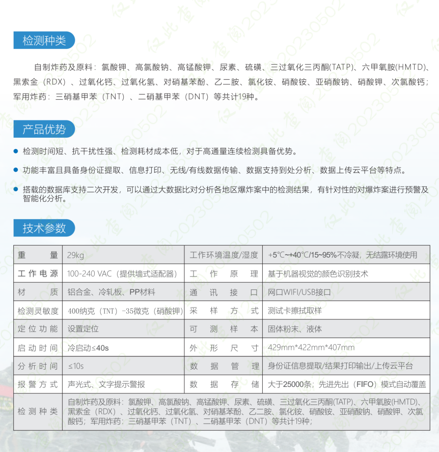 團隊基(jī)於(yú)默森海默加成、特征位點(diǎn)氧化還原、陰離子誘(yòu)導聚集、克腦文格反應等原理設計探針新材料(liào)的(de)基礎上,集成微流控紙基技(jì)術、機器視覺技術和壓電陶瓷技術,結合顏色特征(zhēng)檢測算法實現微區識別,研(yán)製開發了台式痕量爆炸物智能比(bǐ)色檢測儀。