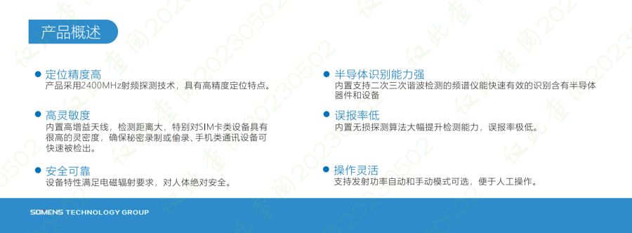 非線性(xìng)節點探測器產品采用2400MHz射頻探測(cè)技術,具有高精度定位特點。