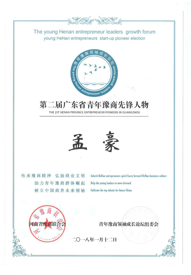 Meng Hao, the chairman of Shoumenshen Technology Group Co., Ltd. (formerly known as Meng Hao), was selected as the second leader of the young Henan businessmen in this event. Before that, Meng Hao also won the 17th Henan Provincial Youth May Fourth Medal, the 5th Zhumadian Youth May Fourth Medal, 2014 Dongguan Top Ten Good People and other honorary titles.