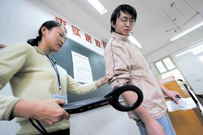 3、第三道(dào)門檻——人工檢測,為了營造良好的考試環境和考生學習(xí)環境,安保人員都會對(duì)考生進行搜身檢查,檢查考生(shēng)是否攜帶手機,一方麵手機幹擾了考場考試環境,另外一(yī)方(fāng)麵手機(jī)嚴重影響了考生(shēng)的學生環境,很多(duō)考生(shēng)都會對手機有著嚴重的(de)依賴症,經常性地低頭玩手機!